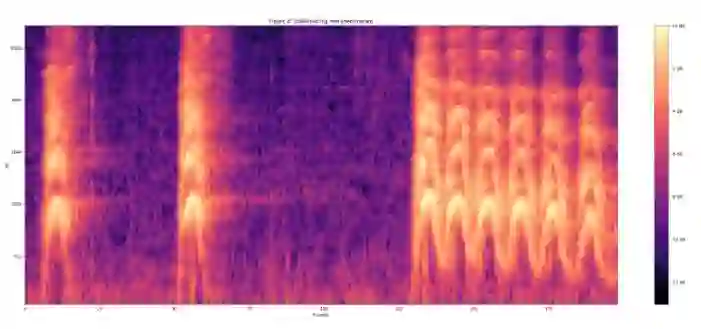使用 25ms 的帧长、10ms 的帧移,以及周期性的 Hann 窗口对语音进行分帧,对每一帧做短时傅里叶变换,然后利用信号幅值计算声谱图。