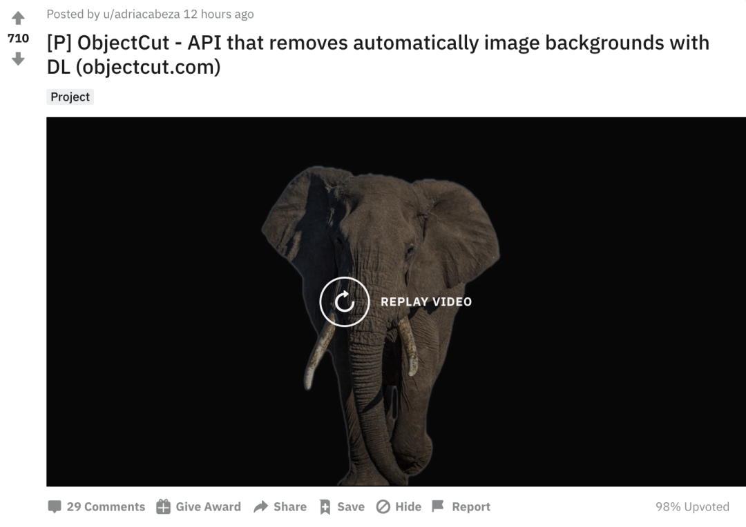 这项新应用名叫ObjectCut,在Reddit上一经发布,12小时就获得700+的热度。
