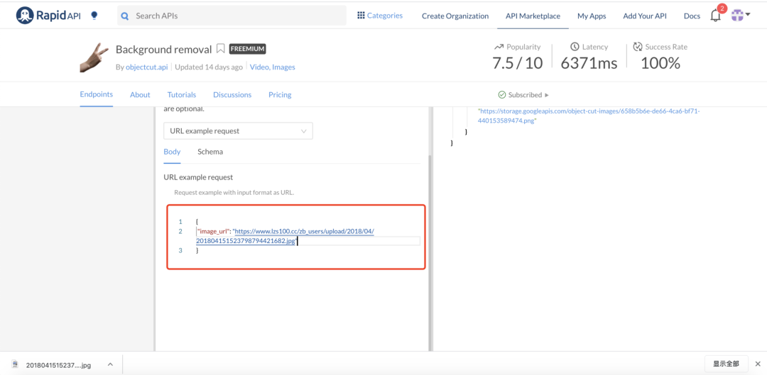 在线API,只需输入图片网址,即可自动删除目标背景。