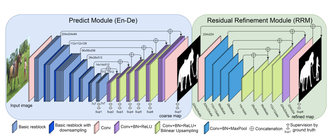 BASNet的核心框架如下图所示,主要由2个模块组成: