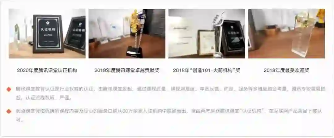 起点课堂和腾讯课堂维持长期的战略合作,起点课堂凭借优质的课程内容及尽心的服务口碑从2万余家入驻机构中脱颖而出,连续6年荣获腾讯课堂“认证机构”,也是互联网产品类目下的唯一 一家被认可的机构。