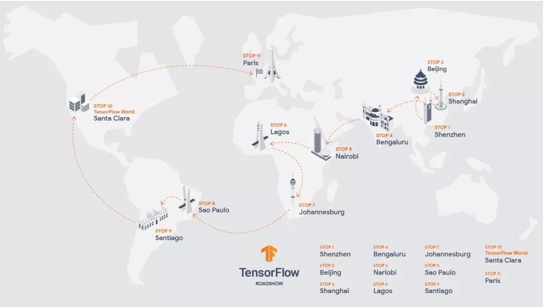 为与世界各地的当地社区建立联系,我们在超过 11 个城市举办了 TensorFlow Roadshow。在 Roadshow 中,TensorFlow 社区成员相聚一堂,共同探讨开发心得、分享社区亮点集锦。