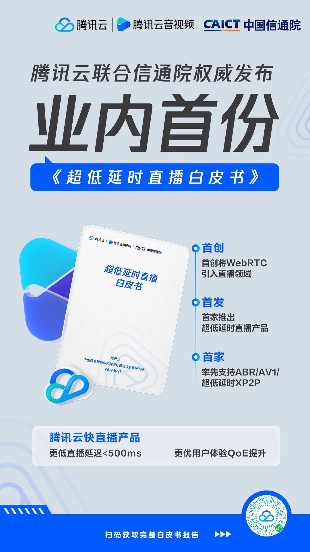 2月22日,腾讯云携手信通院联合发布《超低延时直播白皮书》。在白皮书中指出,随着越来越多线上业务需要大规模并发支持以及强互动体验,超低延时必将成为整个直播产业发展的主要方向。