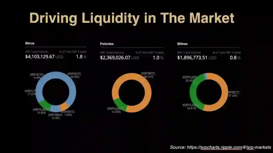 Bitrue CEO Curis Wang 在他的演讲中分享了题为“增强市场流通性”的内容,该图片源于 Ripple 官方的 XRP Chart。它揭示了 Bitrue 交易所在酒会当天 XRP 交易量已超越 Poloniex & Bittrex,占到全球 XRP 总交易量近 2% 的份额。对此消息,XRP 核心社群成员也表示非常拥护与支持。它也体现了 Bitrue 团队在熊市中逆境增长,脚踏实地做事情的态度。