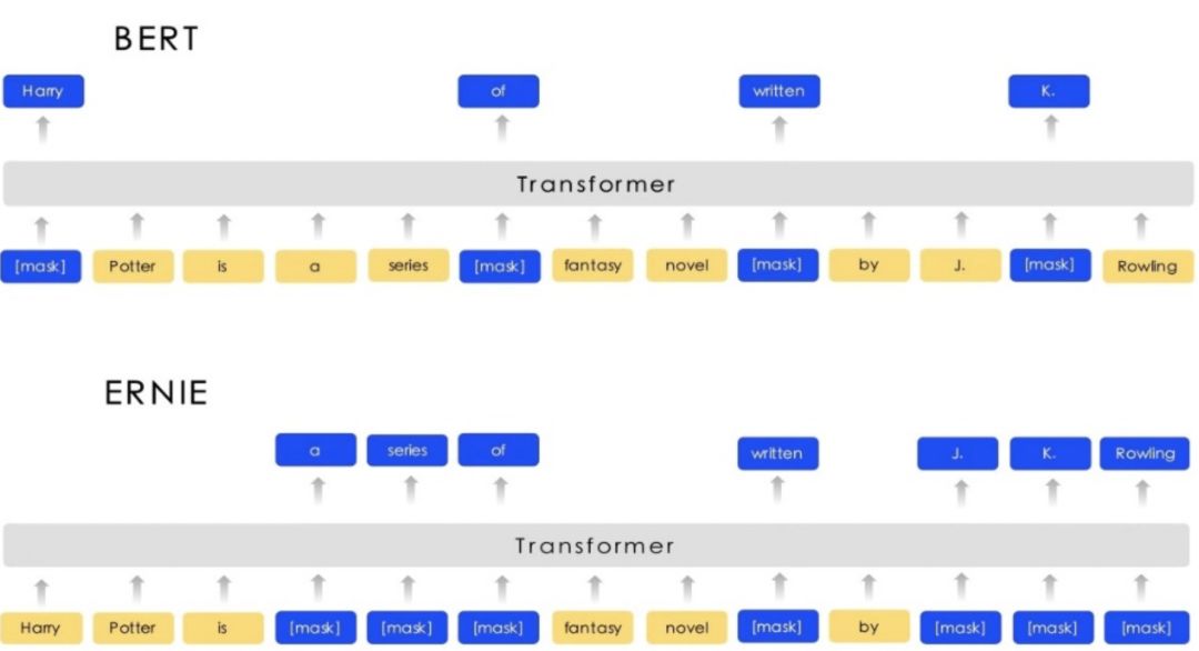 使用NLP的工具来识别短语和实体,包括3种层级的Masking:基本、phrase和entity。依次对基于基本级别、短语级别、实体级别分别进行mask训练。对于对话数据,还训练了Dialogue LM。使用Q和R标记query和response。