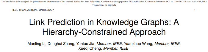 (2)提出了一种基于层次约束的链接预测方法(hTransM),该方法在知识图谱嵌入的方法上实现。