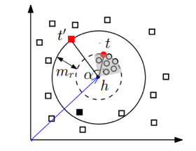 在这种情况下,把一个正例和一个负例区分开来不仅需要考虑与实体h的虽短距离d,还需要考虑与扇形区域的相近程度。对于一个给定的三元组(h,r,t),可以表示为: