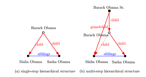 在上图中,实体 Barack Obama Sr,Barack Obama 以及 Malia 和 Sasha 通过关系 child 组成了一个三级层次结构。
