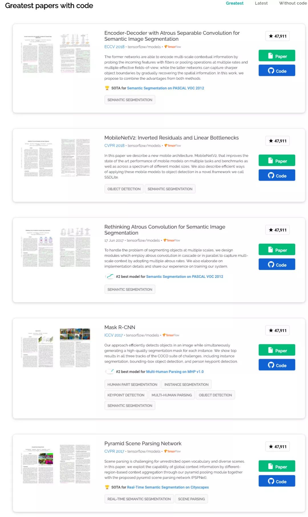 但是,仅仅能迅速浏览热门研究并找到代码还不够,做某一领域的研究,先了解现在该领域的state-of-the-art技术是必要的。