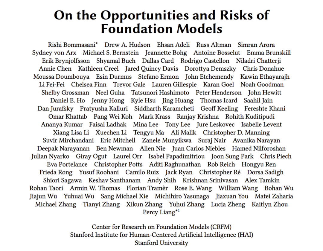 编者按:近几年,预训练模型受到了学术界及工业界的广泛关注,对预训练语言模型的大量研究和应用也推动了自然语言处理新范式的产生和发展,进而影响到整个人工智能的研究和应用。近期,由斯坦福大学众多学者联合撰写的文章《On the Opportunities and Risks of Foundation Models》,将该模型定义为基础模型(Foundation Models),以明确定义其在人工智能发展过程中的作用和地位。文章介绍了基础模型的特性、能力、技术、应用以及社会影响等方面的内容,以此分析基于基础模型的人工智能研究和应用的发展现状及未来之路。鉴于该文章内容的前沿性、丰富性和权威性,我们(哈工大 SCIR 公众号)将其翻译为中文,希望有助于各位对基础模型感兴趣、并想了解其最新进展和未来发展的读者。因原文篇幅长达 200 余页,译文将采用连载的方式发表于哈工大 SCIR 公众号,敬请关注及提出宝贵的意见!