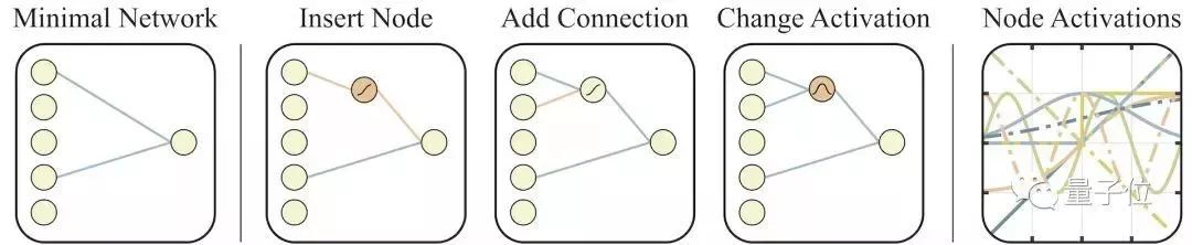用于搜索神经网络拓扑的操作受到神经进化算法(NEAT)的启发。在NEAT中,拓扑和权重值同时优化,研究人员忽略权重,只进行拓扑搜索操作。