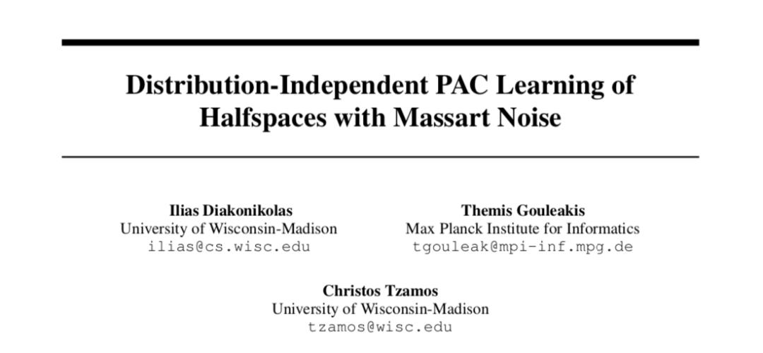 这篇论文研究了在训练数据中有未知的、有界的标签噪声的情况下,如何为二分类问题学习线性阈值函数。论文中推导了一个在这种情境下非常高效的学习算法,解决了一个基础的、长期存在的开放性问题:在有Massart噪声的情况下高效地学习半空间;这也是机器学习的核心问题之一,这篇论文带来了巨大的进步。