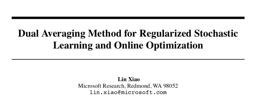 https://papers.nips.cc/paper/3882-dual-averaging-method-for-regularized-stochastic-learning-and-online-optimization