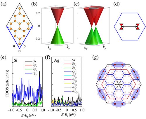 图1:硅烯的原子结构及成对出现的狄拉克锥