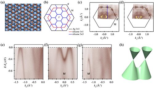 最近,中国科学院物理研究所/北京凝聚态物理国家研究中心表面物理国家重点实验室SF9组的冯宝杰特聘研究员、陈岚研究员、吴克辉研究员与SF10组的博士生周辉、研究员孟胜进行合作,利用角分辨光电子能谱(ARPES)并结合理论计算发现了单层硅烯的狄拉克锥会发生劈裂,该劈裂是由于衬底的长程周期势所导致。