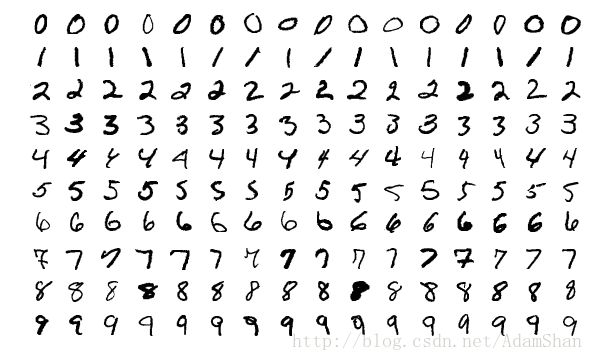 我们从一个实例来了解机器学习的基本概念。假设我们现在面临这样一个任务(Task) ,任务的内容是识别手写体的数字。对于计算机而言,这些手写数字是一张张图片,如下所示: