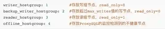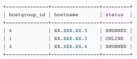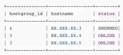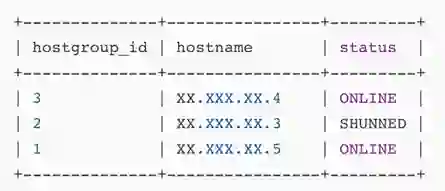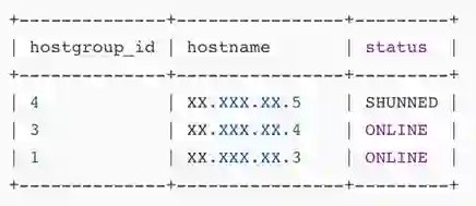 mysql-monitor_groupreplication_healthcheck_interval: 监视组复制状态的心跳间隔,如果成员状态不可得,则被暂时置为 shunned(由 mysql_galera_hostgroups.max_transactions_behind 列控制),默认 1000ms