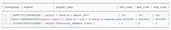 这里的 SQL 是完整的 包含参数SQL 语句,而 非参数化后的语句,如果 SQL 语句进行了重写,则使用重写后的完整的 SQL 语句参与 hash 运算,即相同 digest 的语句只要参数不相同,会分别缓存