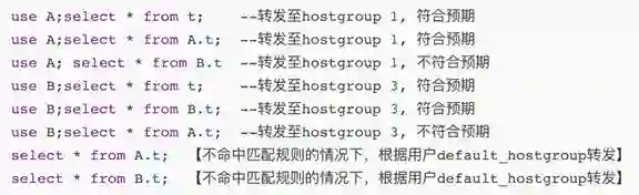 Use database,不论后面跟什么,都以规则中设置的 destination_hostgroup 为准