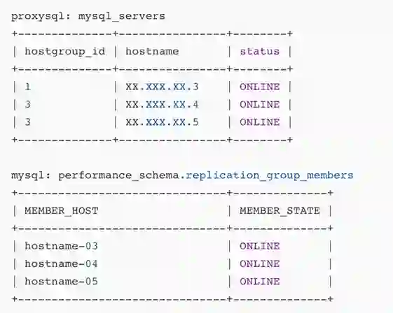 原因:此时 mgr 和 proxysql 都认为机器状况正常,所以正常地分别转发到两个读组。
