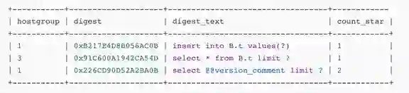 说明:在 mysql_query_rules 中的 match_digest/match_pattern 字段设置正则匹配规则,优先匹配 match_pattern
