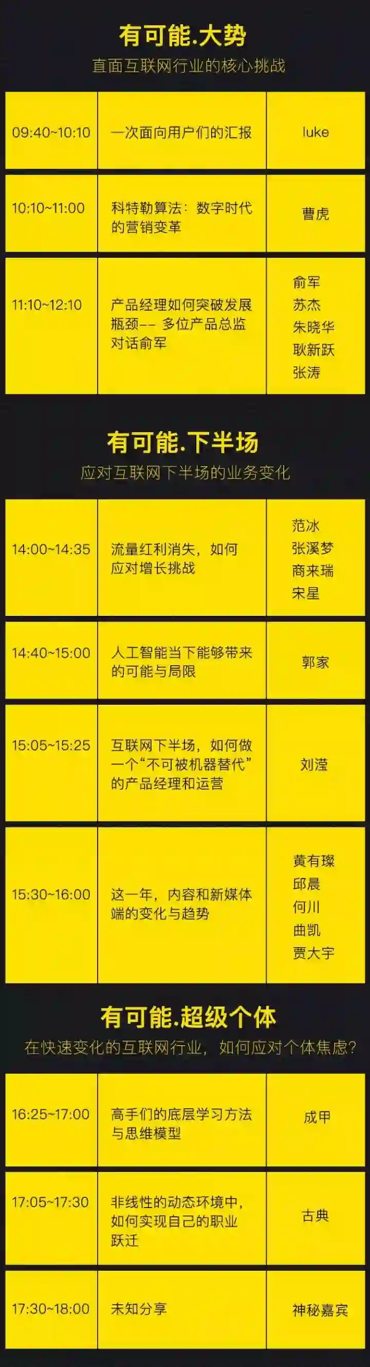 “有可能”是一个本身就充满无限遐想空间的名字。在我们眼中,无论是互联网这个行业,还是这个行业内那群善于折腾的有趣的家伙们,亦或是学习本身,都是可以存有无限可能的事。我们天然喜欢这个名字,希望借这个活动来见证一些大家身上发生过的“可能”,以及能够看到某些关于未来的“可能”。