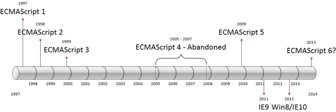 JS 的第一纪元(从 1997 至 2007) 堪称虎头蛇尾。大家都知道 Brendan Eich 的故事,但是关于 ES4 是如何与诸如 Flash/Actionscript 之类的封闭生态系统艰难地进行激烈竞争的故事却鲜为人知。我推荐大家读读《JavaScript:20 年发展史》来了解 JS 起源的前前后后,我认为这本书是一个非常合适的选择, 因为该书是由 JS 的主要作者 Brendan Eich 和 Allen Wirfs-Brock 联手发布的。