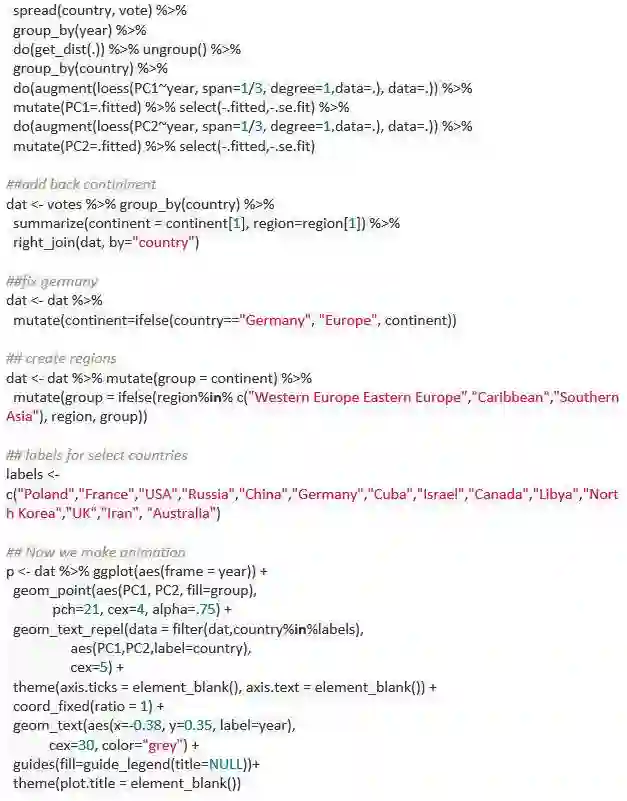 以下是代码。整理数据的代码是由David Robinson(https://twitter.com/drob)提供的。你会看到我们将随时间变化的距离进行了平滑处理,从而避免一些点跳动范围过大。