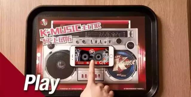 肯德基也推出过类似的产品,它们的音乐垫餐纸名为「K-Music」。扫一扫垫餐纸上的二维码,按下 Play 键,就可以播放15秒的试听以及趣味动画。