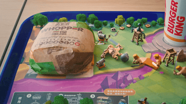 汉堡王就联合手游「部落冲突」推出了特别版的垫餐纸。把汉堡和可乐放置到垫餐上的指定位置,用 QQ-AR 扫描就能观看到一段野蛮人之王与汉堡可乐的 AR 动画,简直是太有趣了!