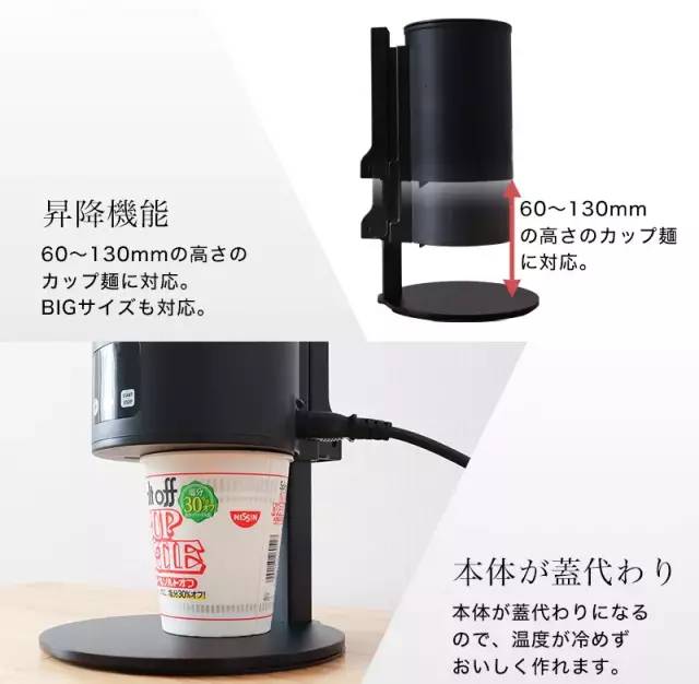 Makase-tei可以调节6-13cm的高度,水容量600毫升,冲泡时间提醒可设置从30秒到9分钟。多大碗,啥口味,软的硬的泡面都能搞定。