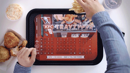 德国肯德基推出了「蓝牙键盘垫餐纸」,垫餐纸可以通过蓝牙与手机连接,这样你就能边吃炸鸡薯条边刷微博、回短信,而不会弄脏自己的手机,甚至还可以一边吃鸡,一边「吃鸡」。
