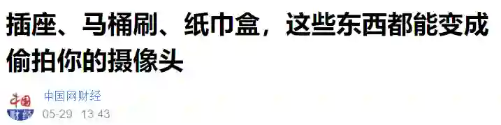 第二,被偷拍。别说在酒店,就算行走在大街上,甚至是厕所里(一直搞不懂有啥可看的...),针孔摄像头都无处不在,防不胜防。