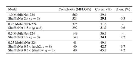 表8 ShuffleNet与MobileNet在ImageNet上精度对比 [10]