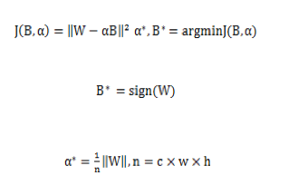 在XNOR网络中,优化的目标是将两个实数向量的点乘近似到两个二值向量的点乘,即