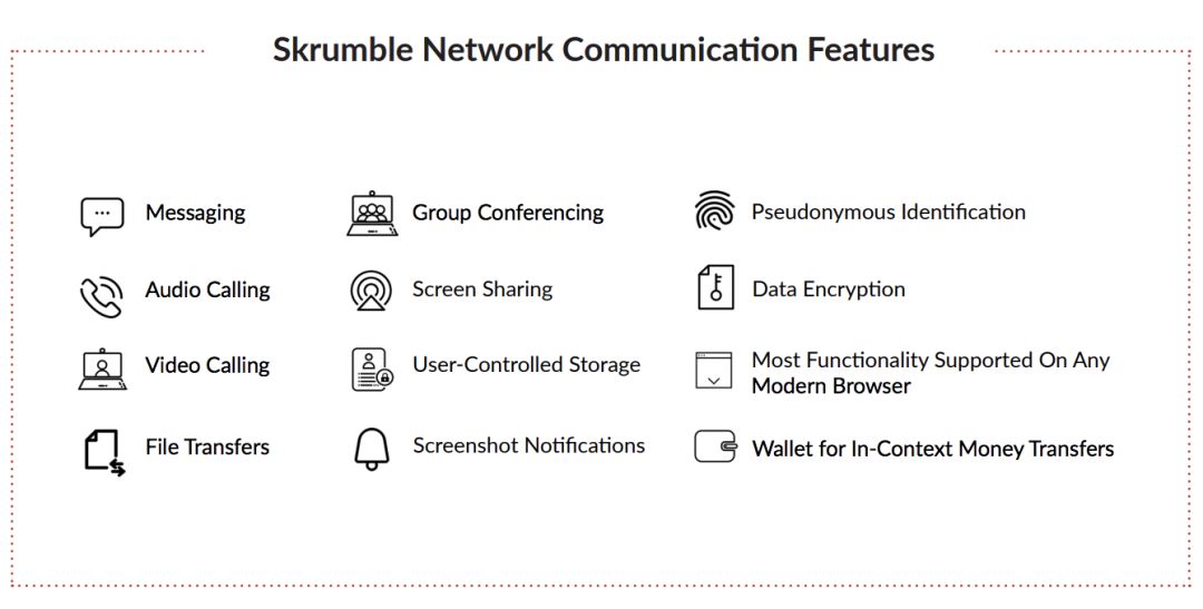 而这个问题,就是 Skrumble 试图通过区块链方式来解决的。Skrumble Network 之所以要使用区块链技术,就是想构建一个真正可以让用户完全信任的通讯网络,在这个网络上面,用户不用担心自己的隐私和安全受到威胁,可以安全地连接在一个隐私和安全免遭威胁、不用担心黑客入侵、可以自由交流的平台。