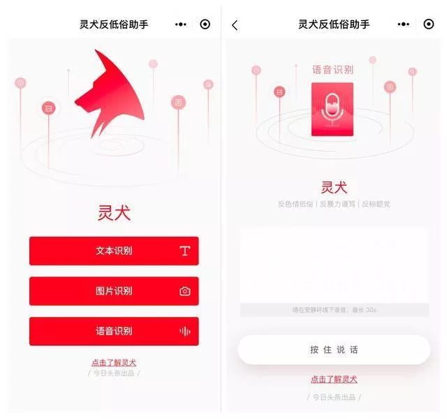 36氪获悉,今日头条灵犬反低俗助手进行了升级,新版“灵犬”增加语音识别功能,支持用户以语音输入方式对内容进行反低俗检测,具备反色情低俗、反暴力谩骂、反标题党等能力。据官方介绍,“灵犬”本次所上线的语音识别功能主要涵盖语音类型识别和语音内容识别两大核心能力,在用户输入语音后,“灵犬”将通过分析音频类型,判断该音频是否包含实质内容。