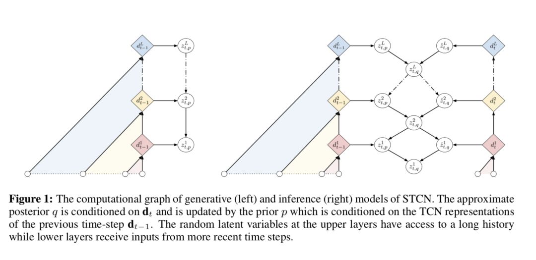 Our contributions can thus be summarized as: 1) We present a modular and scalable approach to augment temporal convolutional network models with effective stochastic latent variables. 2) We empirically show that the STCN-dense design prevents the model from ignoring latent variables in the upper layers (Zhao et al., 2017). 3) We achieve state-of-the-art log-likelihood performance, measured by ELBO, on the IAM-OnDB, Deepwriting, TIMIT and the Blizzard datasets. 4) Finally we show that the quality of the synthetic samples matches the significant quantitative improvements.