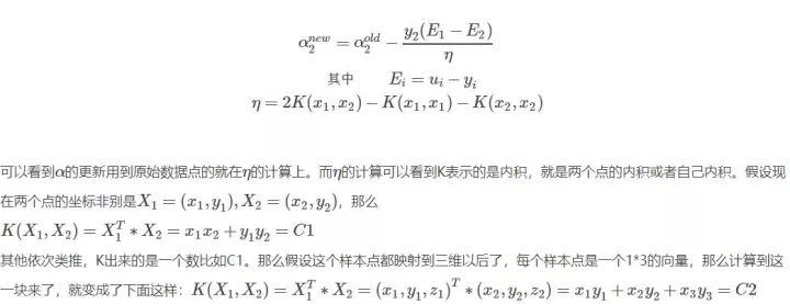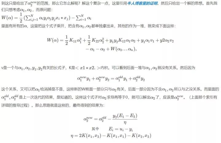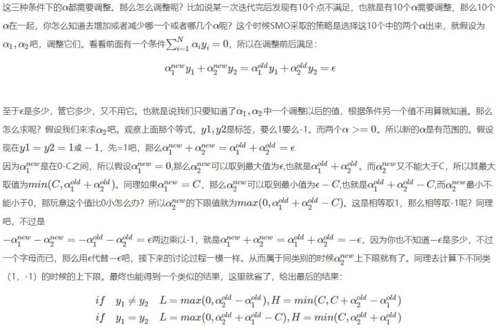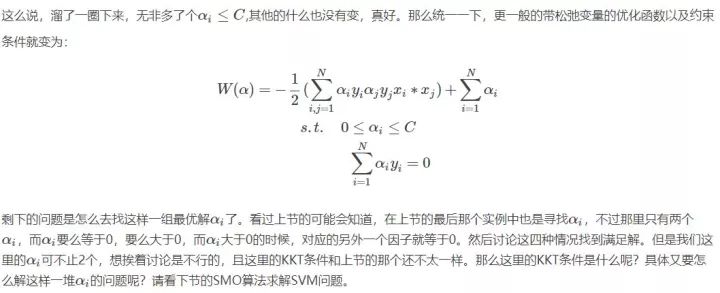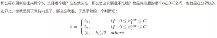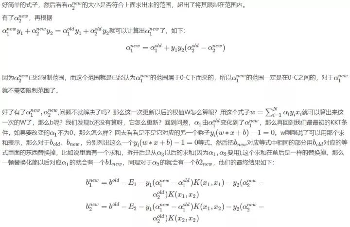 这里顺便提一下后面会介绍到的内容,就是实现SVM算法的SMO方法,在哪里,会有很多,那么人们怎么解决的呢,就是随便选择两个去变化,看看结果好的话,就接受,不好的话就舍弃在选择两个,如此反复,后面介绍。