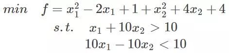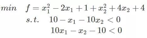 假设有一个目标函数,以及它的约束条件,形象的画出来就如下: