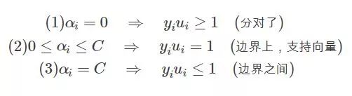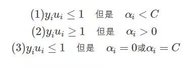 那么满足KKT条件的,我们说如果一个点满足KKT条件,那么它就不需要调整,一旦不满足,就需要调整。由上可知,不满足KKT条件的也有三种情况: