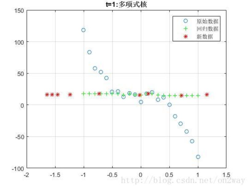 % title('t=1:多项式核')