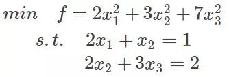 首先来了解拉格朗日乘子法,那么为什么需要拉格朗日乘子法?记住,有拉格朗日乘子法的地方,必然是一个组合优化问题。那么带约束的优化问题很好说,就比如说下面这个: