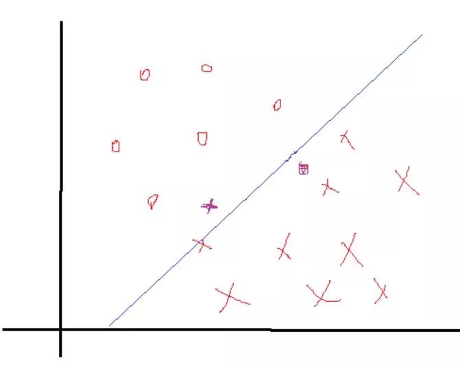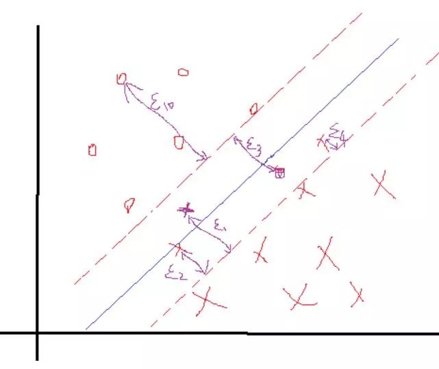细心的你肯可能会发现,上述所有的构造等等都是在数据完全线性可分,且分界面完全将两类分开,那么如果出现了下面这种情况: