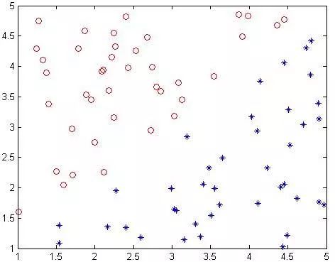 一个简单的二分类问题如下图: