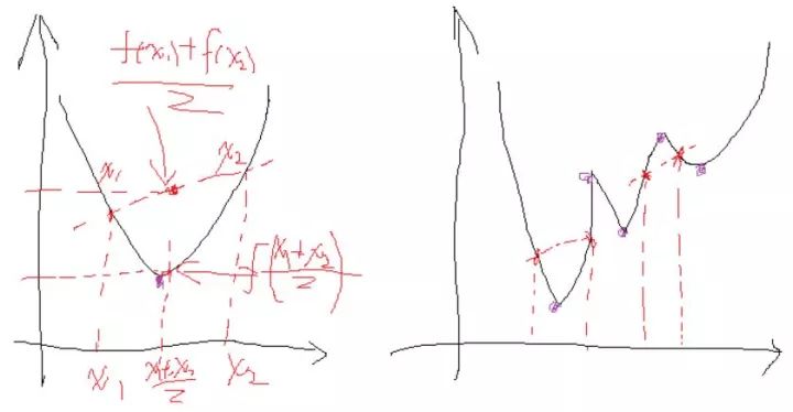 凸的就是开口朝一个方向(向上或向下)。更准确的数学关系就是: