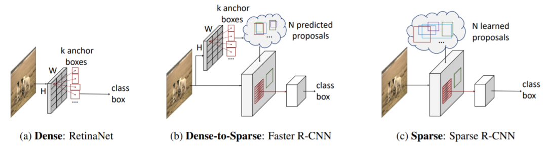 Sparse R-CNN可以看作是目标检测框架从dense到dense-to-sparse到sparse的一个方向拓展。