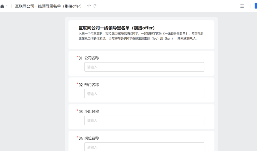 EXCEL本来是打工人的噩梦,现在成了打工人的救星。11月15日下午,一份名为《互联网公司一线领导黑名单(别接offer)》的在线文档,在各大群内开始传播。