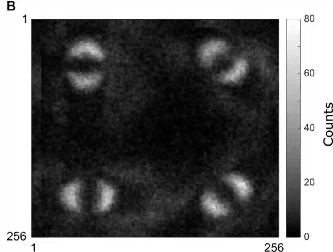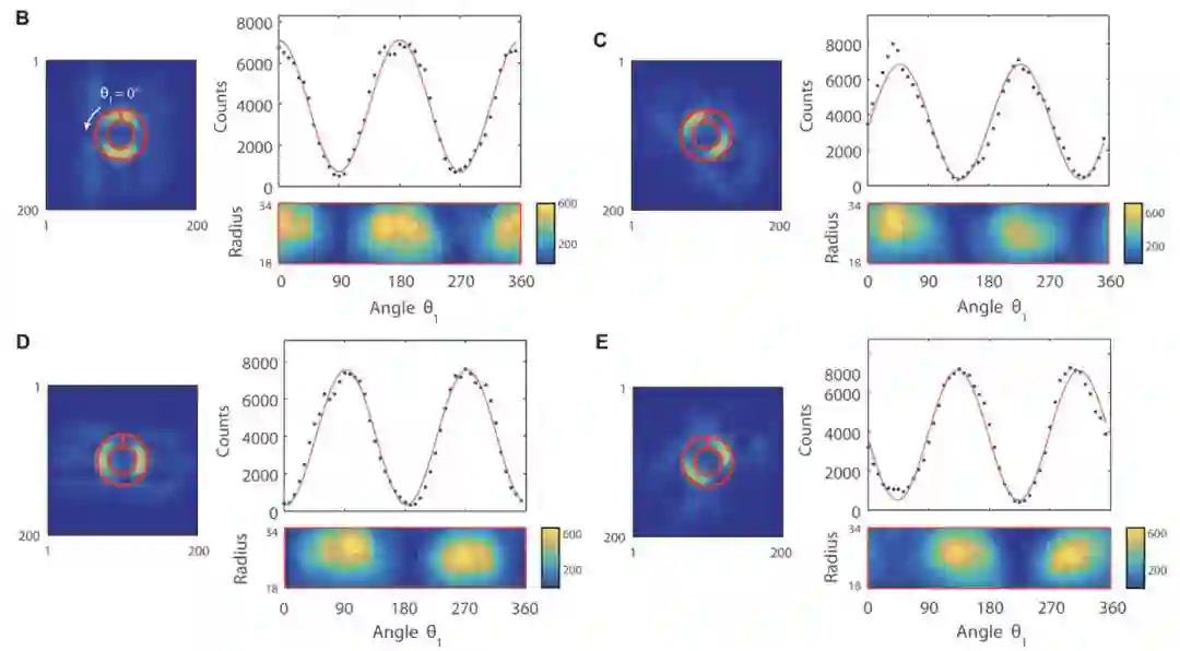 在这个实验过程中,研究人员为了对贝尔不等式进行成像,他们使用了简化版的公式1与通过SPDC生成的EPR状态所表现出的空间相关性结合,来获得贝尔行为的空间分辨率图像。