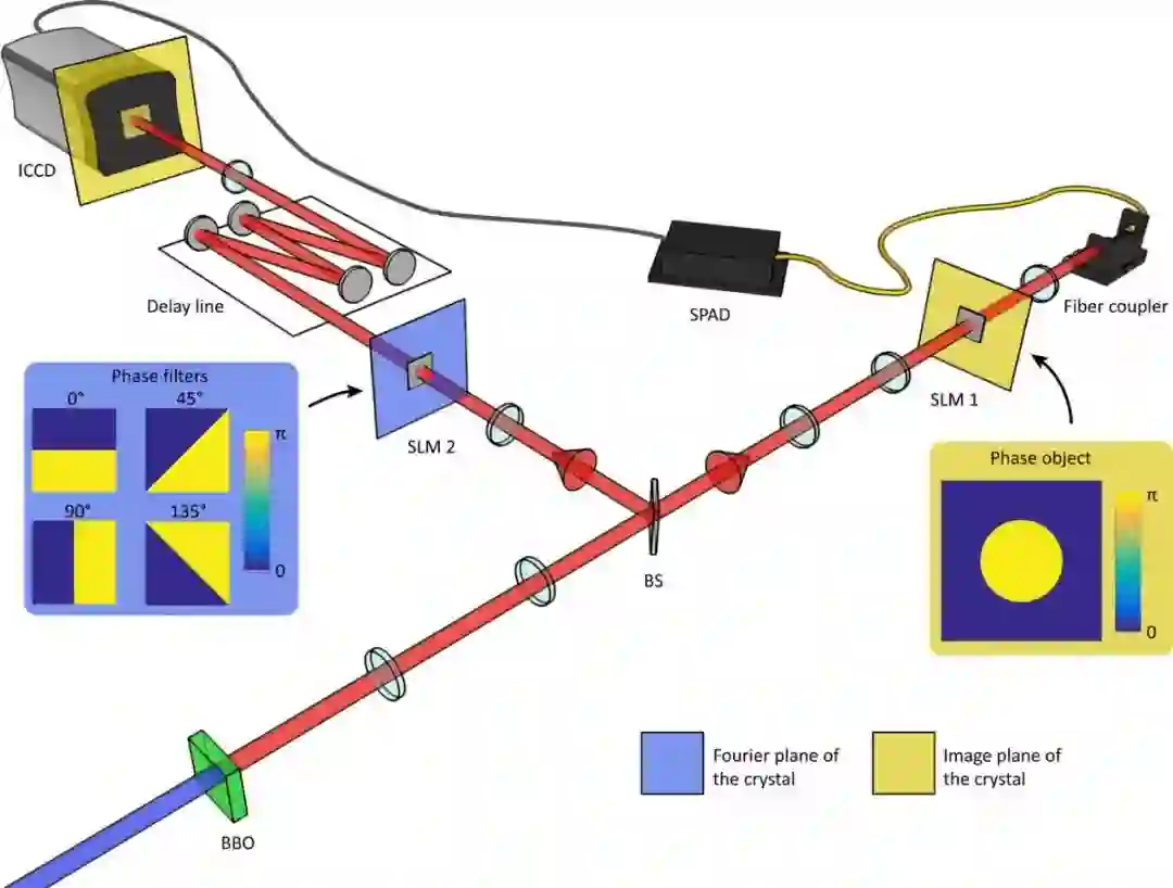 第二个光子通过一个约20米长的图像保存延迟线传播,最后被一个增强电荷耦合器件(ICCD)相机检测到。